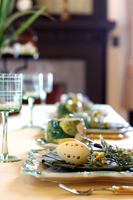 ダイニングのテーブルコーディネートはシックなブロカントスタイル
