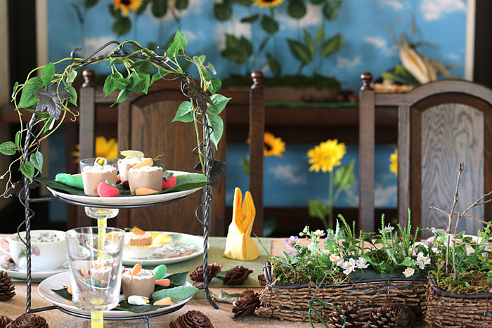 木の実とお菓子で作ったアレンジメントはお子様達にも大好評!