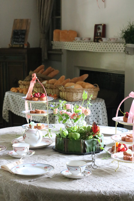 10年前は聖地のような憧れの存在だった横浜西洋館も今では装飾の常連となり、季節ごと、世界のクリスマス、花と器のハーモニー、ハロウィンの装飾をさせて頂きました。その経験から推薦を受けて2014年に横浜市で行われた8都市の自治体サミットで150名のティータイムを担当。