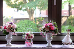 横浜プレミアムライフコーディネート協会代表チーム竹内・保科<キエット邸>、フラワーアーティスト中村明美先生のチーム中村・福井<バードック邸>がそれぞれの洋館を展示装飾させていただきました。