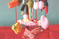 松の実や白樺をベースにしたアレンジメント フエルトオーナメントも全て手作り