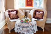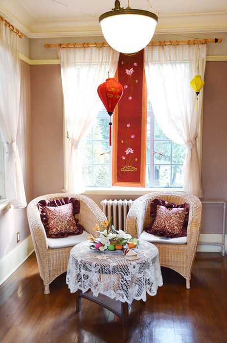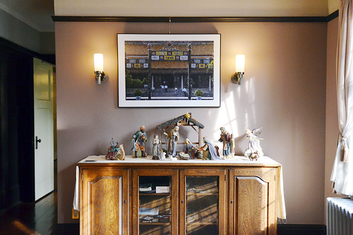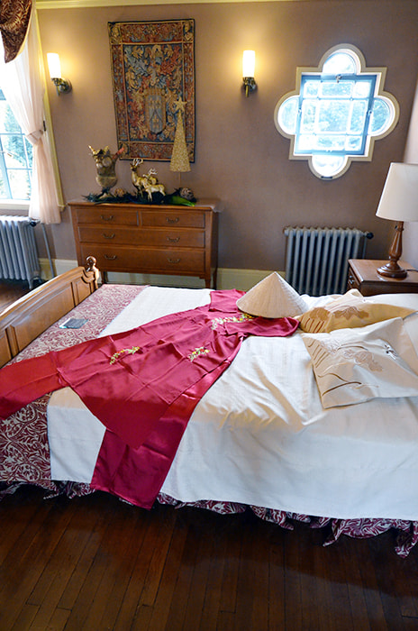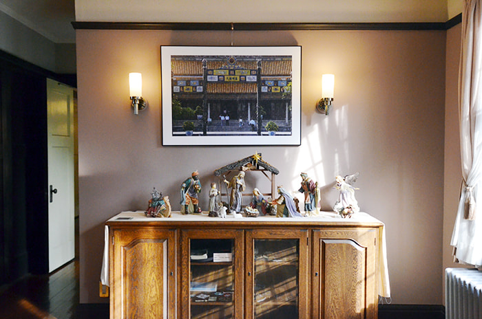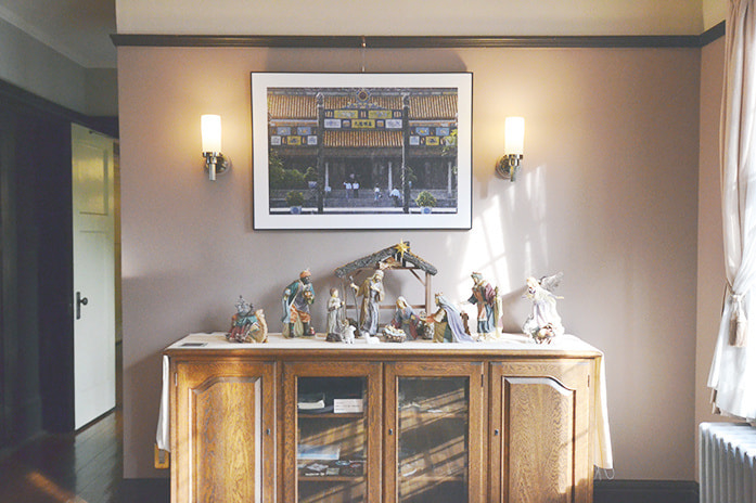 書斎にはフランス統治時代を思わせる陶器の置物を飾って。