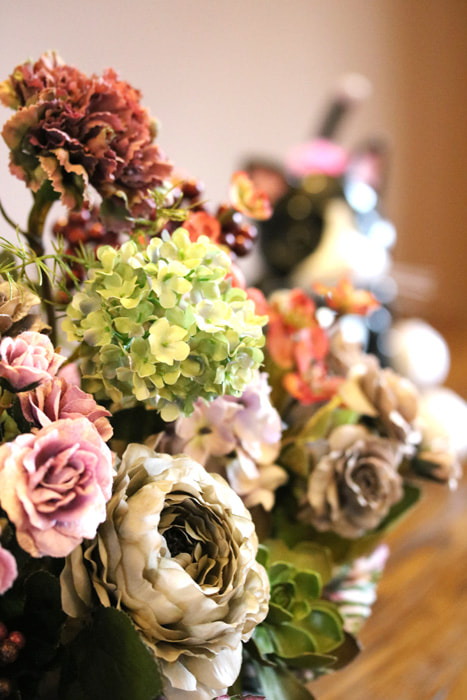 書斎は秋色のアーティフィシャルアレンジ&ネコちゃん