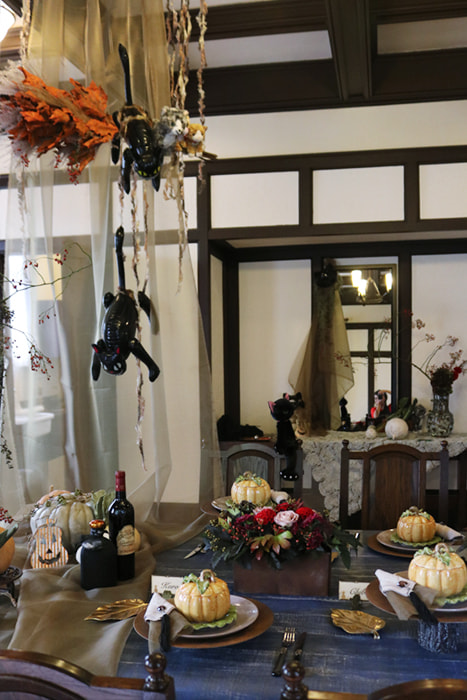 横浜プレミアムライフコーディネーター協会【The Table "ALICE"】【サロン・ド・ボヌール】2つのサロン合同で横浜山手西洋館・ベーリックホールにてハロウィンを展示しました。