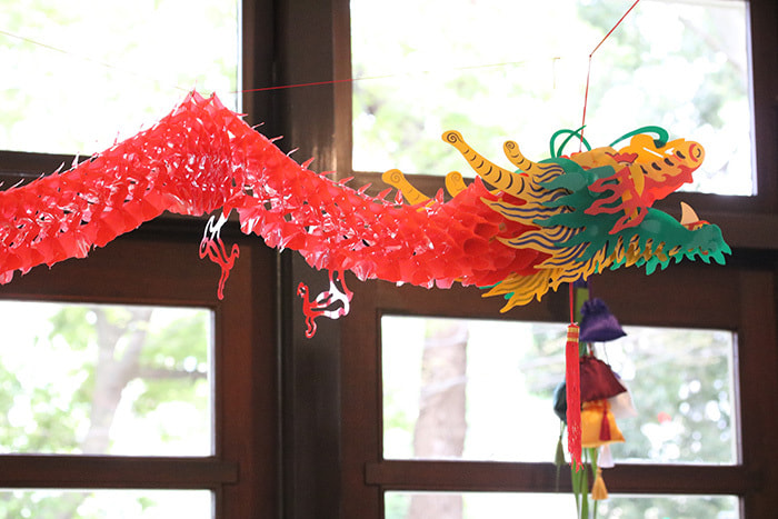 ドラゴンボートレースをイメージした龍はサンルームに。