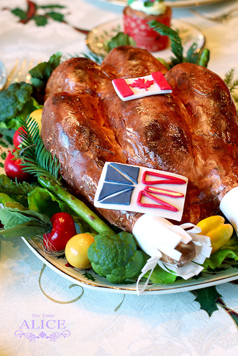 ターキーはカナダでもポピュラーなクリスマスのご馳走です カナダの国旗を付けた特注のターキー