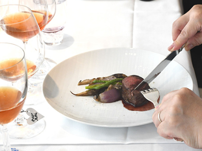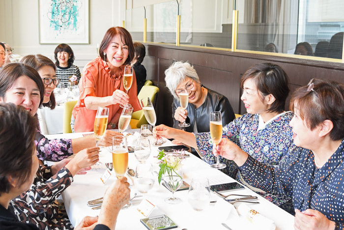 フランス料理〈HANZOYA〉にて大人のマナー講座「テーブルマナー編」の研修会を行いました。バンケットルームをお借りし、お一人ずつフルコースを召し上がっていただきながらの実践講座は大変分かりやすいと好評をいただきました。